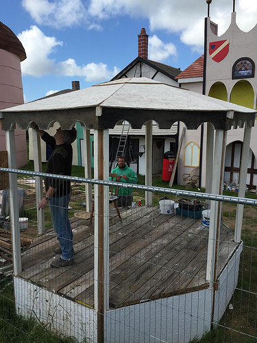 The firestation is progressing well. Roger Davies, our President, brought down the signs. Therfoof structure is looking great and we cant wait for that to be finished.