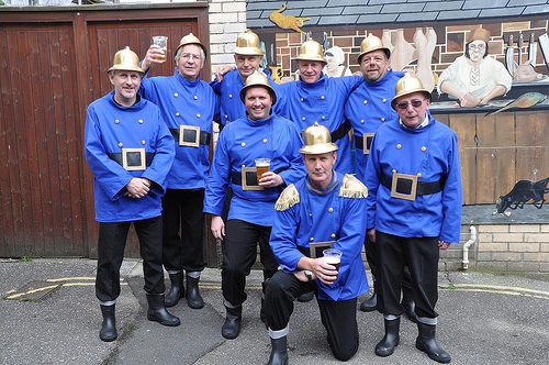 The "dancing" Cavaliers met in the Globe Hotel to change into thier fireman costumes, kindly made by Toni Alexander;