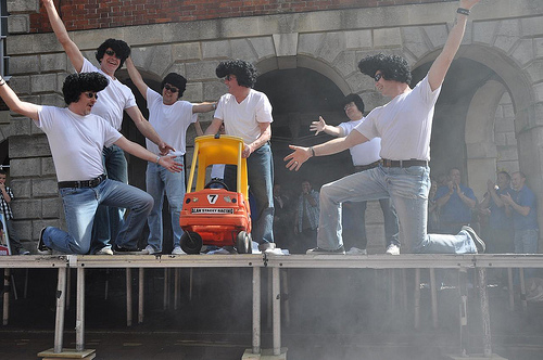 A formula 1 style pit stop event. A car on axle stands and teams of 2 entered and they had to change all for wheels shifting the rear wheels to the front and vice-versa as quickly as possible. It was great fun and we had more entries than ever before including 2 girls teams and 2 mixed. Louise Banfield and her Son entered a team!